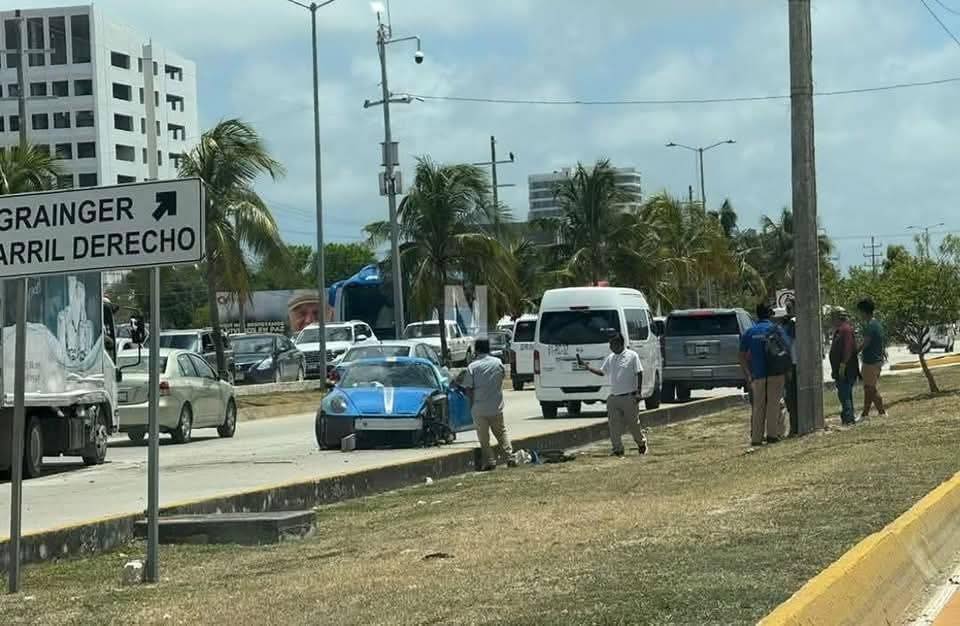 El Porsche GT3, valuado en más de 4 millones de pesos, acabó destrozado frente al hospital Galenia, sobre el boulevard Colosio de Cancún.