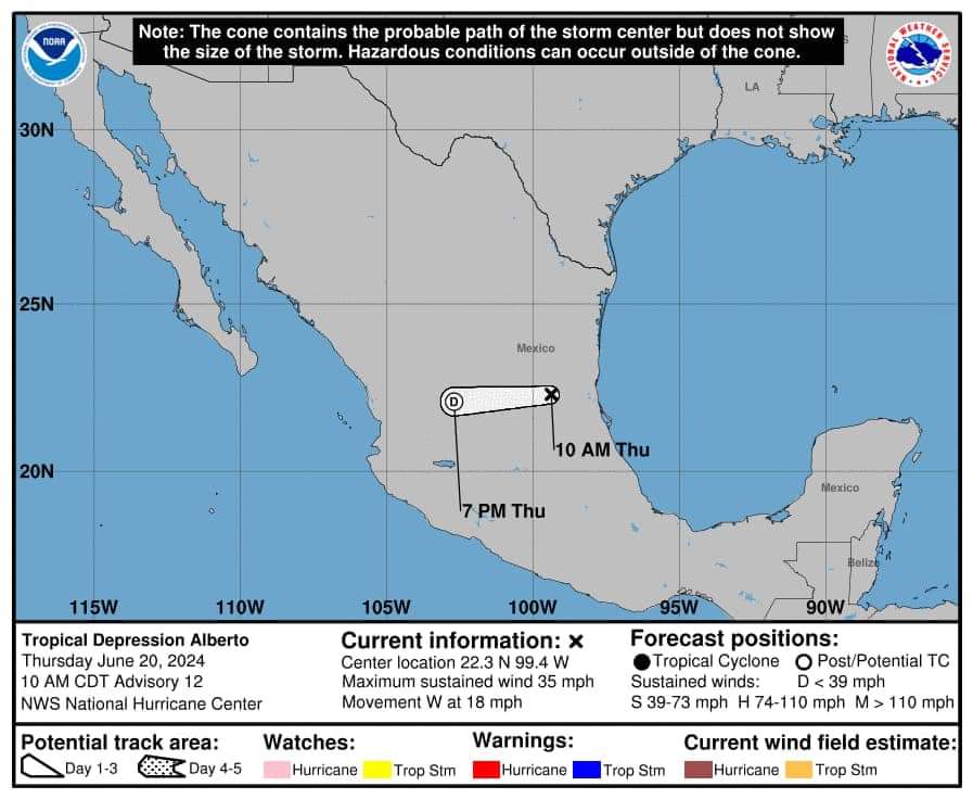 Se debe recordar que “Alberto” tocó tierra a las 4:30 de la madrugada de este jueves 20 de junio en Tamaulipas.