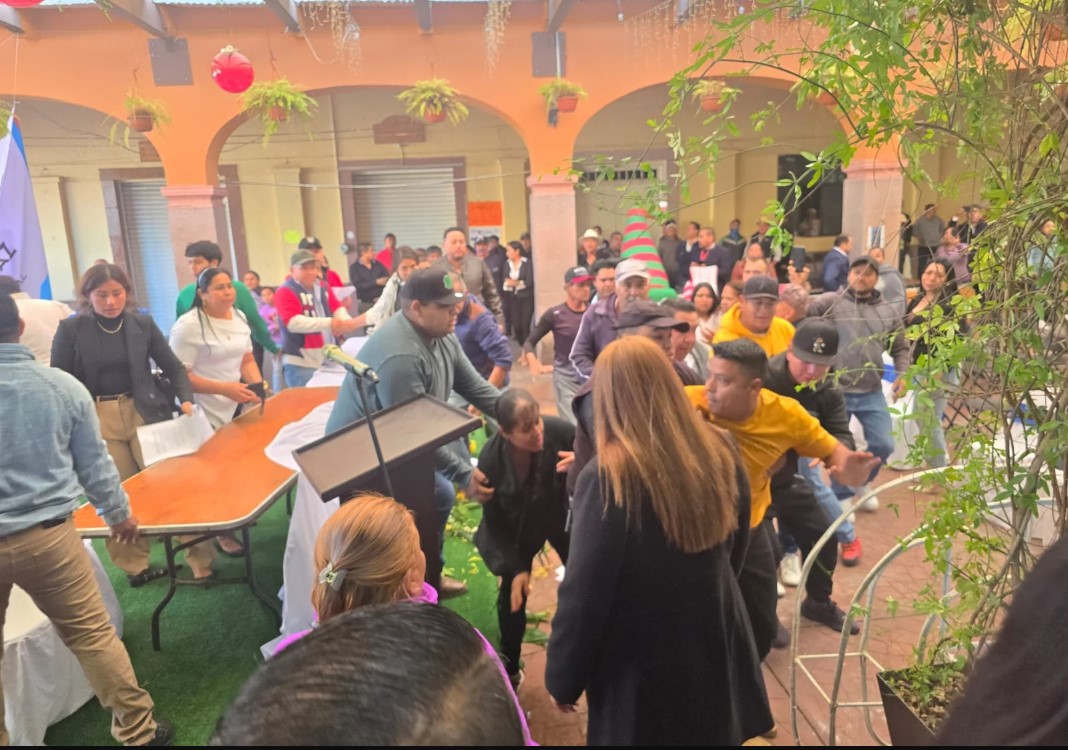 El video del incidente muestra cómo la situación se volvió caótica, con empujones y golpes entre los asistentes y los agentes, lo que permitió que el alcalde electo lograra escapar, evadiendo a las autoridades en plena toma de protesta.