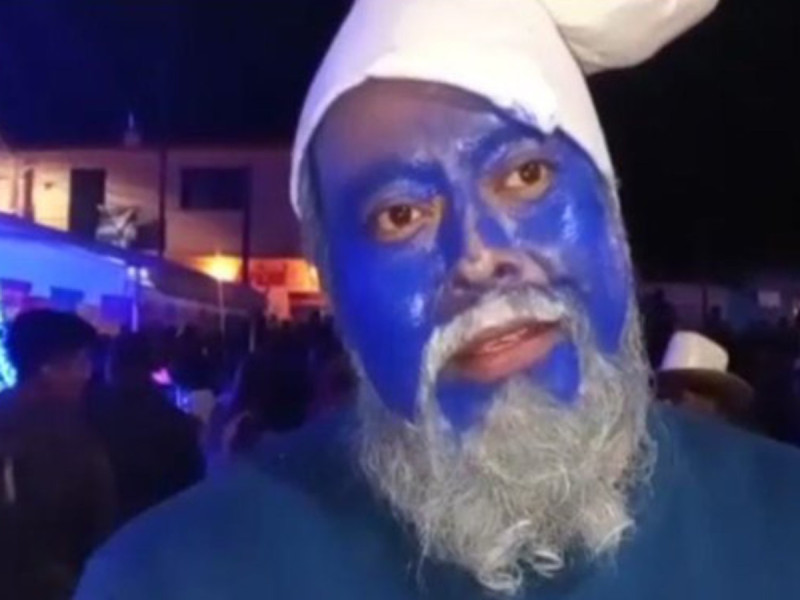 El edil se pintó de azul y lució una barba blanca, así como un gorro, similar al que usan los personajes de esta caricatura.