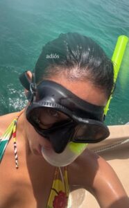 Alejandra Capetillo incluso vivió una experiencia de esnórquel en el segundo arrecife más grande del mundo, donde pudo observar de cerca la fauna marina, incluyendo una tortuga que la sorprendió durante la inmersión.