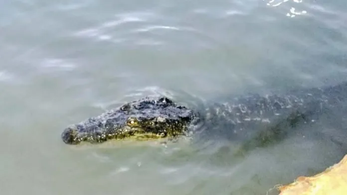 Chetumal (Marcrix Noticias)-La tranquilidad de quienes recorren el bulevar Bahía de Chetumal se vio alterada nuevamente este lunes, cuando un cocodrilo de gran tamaño fue avistado a escasos dos metros de la banqueta, cerca de la pala de eventos Christy’s y de la Megaescultura. El reptil permaneció varios minutos parcialmente fuera del agua, generando alarma entre vecinos, deportistas y turistas que transitaban por la zona.