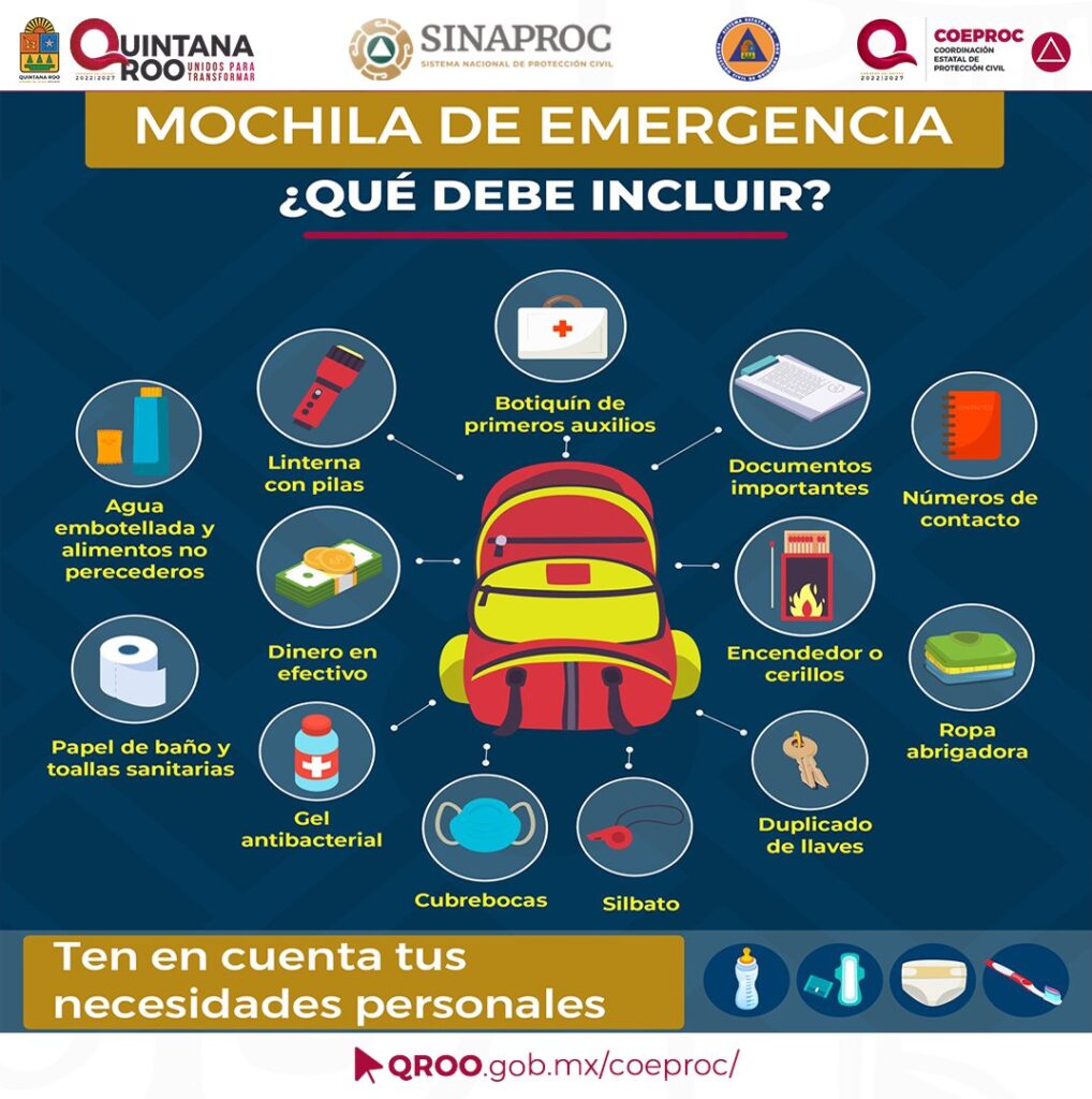 Asimismo, invita a tener lista la mochila de emergencia, con esta acción enfrentarás de buena forma cualquier desastre ocasionado por fenómenos naturales.