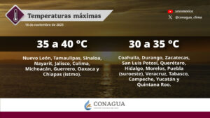 Ciudad de México. (Marcrix Noticias).- El organismo Servicio Meteorológico Nacional (SMN), dependiente de Comisión Nacional del Agua (Conagua), informó que el frente frío 15 se desplaza sobre el noroeste del país e interactúa con una vaguada polar, corrientes en chorro y un sistema ciclónico en niveles medios‑altos, lo que propiciará: