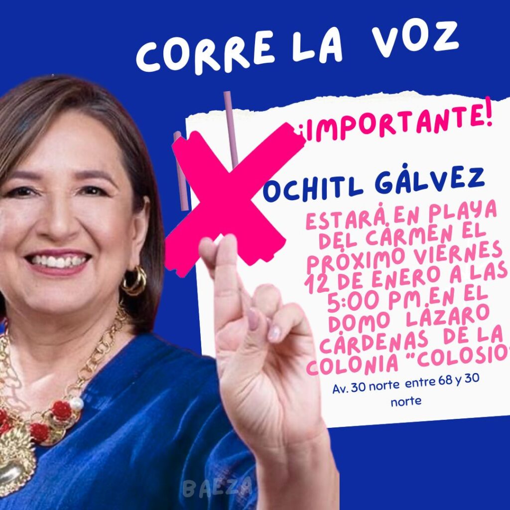 Rojas López detalló que la senadora con licencia encabezará un mitin en el domo Lázaro Cárdenas, ubicado en 30 Avenida norte, entre 68 y 70 norte, Colonia Luis Donaldo Colosio, en Playa del Carmen, a las 17 horas.