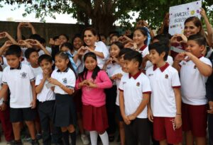 Rancho Viejo, (MARCRIX Noticias).- Durante una visita a la escuela primaria “Enrique Estrella Oxté”, de esta comunidad de la zona continental de Isla Mujeres, las y los estudiantes solicitaron a la gobernadora Mara Lezama Espinosa la construcción de un domo que los proteja de las inclemencias del clima.
