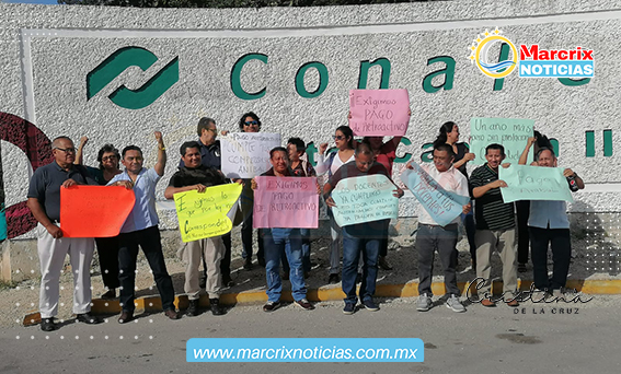 Cancún (Marcrix Noticias).- Maestros representantes de los planteles Conalep en el estado amenazaron con pedir la renuncia de su director general, debido a que consideran que no mantiene el compromiso con su personal docente, ya que no ha logrado que les paguen el retroactivo al que tienen derecho.