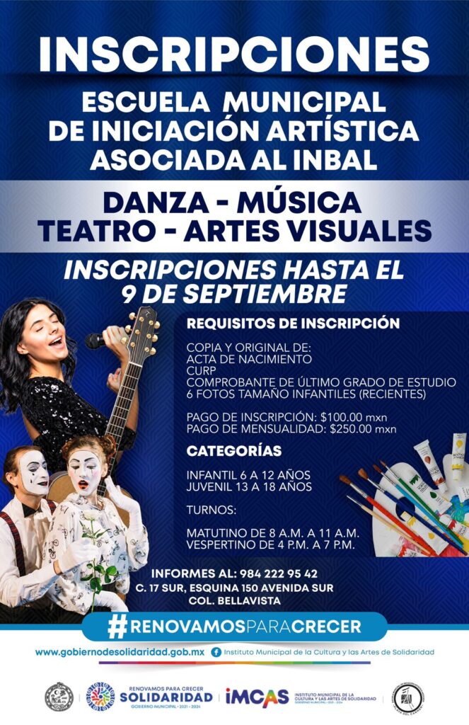 Playa del Carmen, Solidaridad, (MARCRIX Noticias), a 5 de septiembre del 2024.- Para que niñas, niños y jóvenes descubran su talento artístico, el gobierno que lidera la presidenta Lili Campos mantiene sus inscripciones abiertas hasta el 9 de septiembre a la Escuela Municipal de Iniciación Artística Asociada al Instituto Nacional de Bellas Artes y Literatura (INBAL).