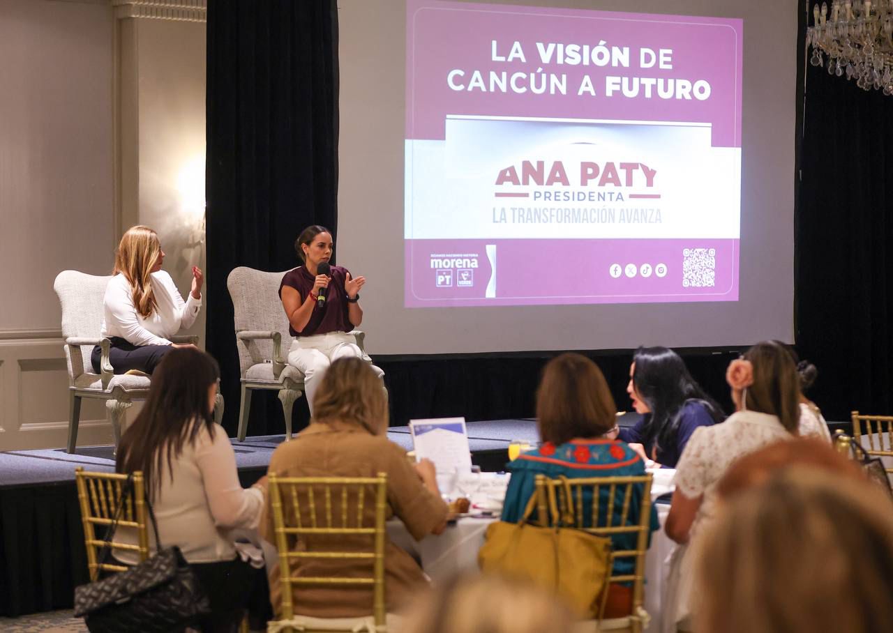 Cancún, Q. R., (MARCRIX Noticias), a 16 de mayo de 2024.- La candidata a la presidencia municipal de Benito Juárez, Ana Paty Peralta, acudió al foro “Conoce a tu candidato” realizado por la Asociación Mexicana de Mujeres Empresarias (AMEXME) Capítulo Cancún, donde compartió su visión a futuro de la ciudad, con bienestar, justicia social y prosperidad compartida para todas y todos los cancunenses.