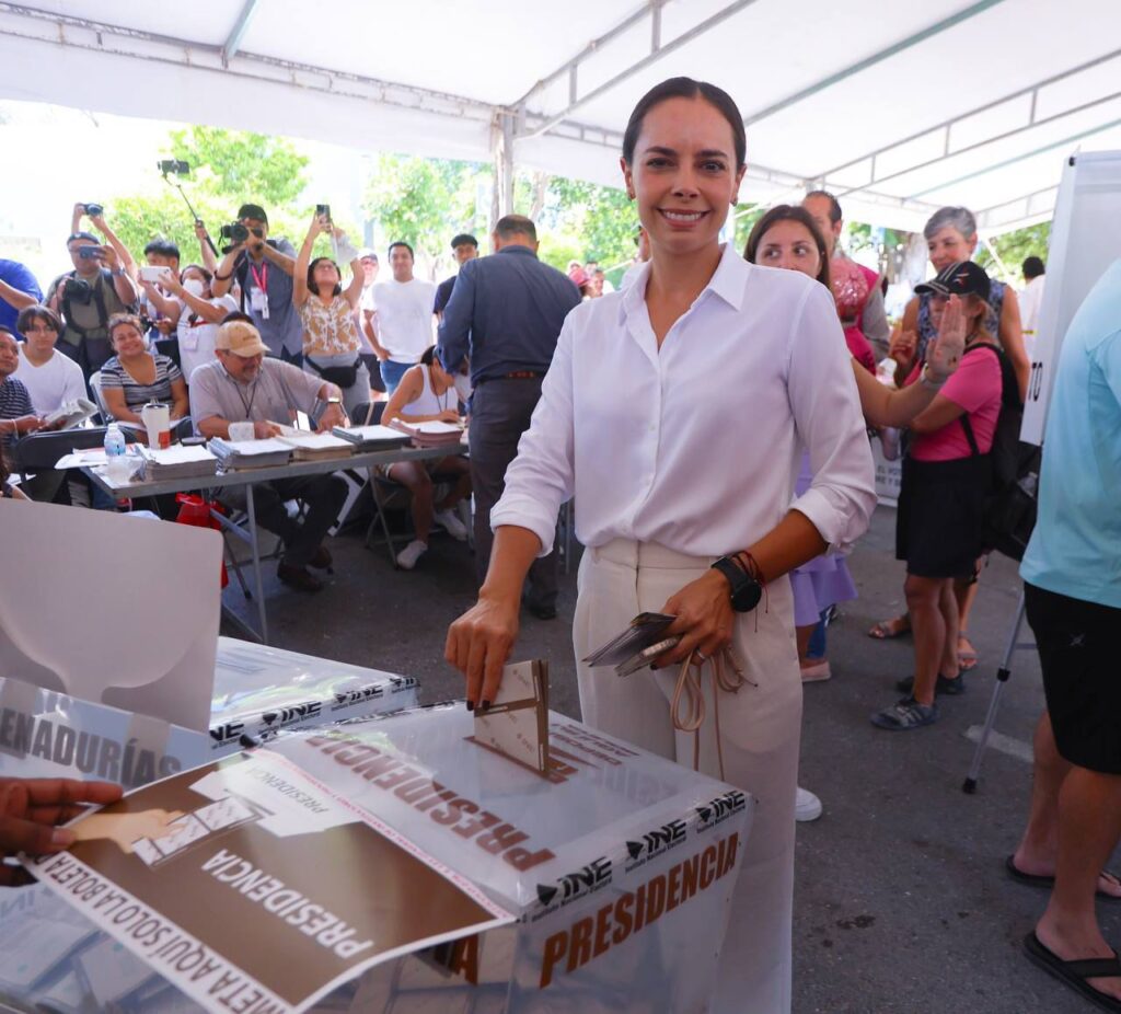 “Es un honor estar aquí con mi familia, cumpliendo con nuestro deber cívico” dijo mientras avanzaba rodeada de su esposo, hijos, su madre y su hermano a la casilla ubicada en el kilómetro 0 del Boulevard Kukulcán.