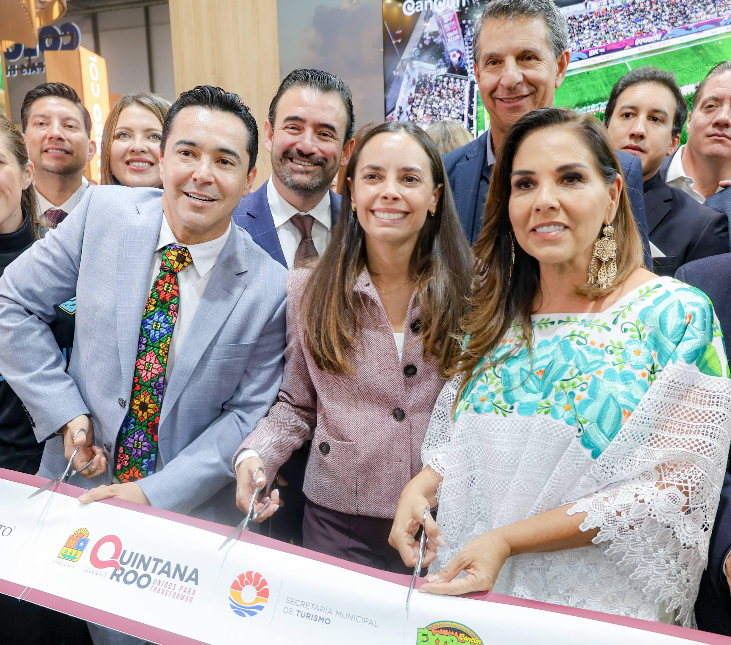 Como parte de la jornada inaugural, la Presidenta Municipal acompañó a la secretaria de Turismo del Gobierno de México, Josefina Rodríguez Zamora; a la gobernadora de Quintana Roo, Mara Lezama; y al embajador de México en España, Quirino Ordaz Coppel, durante el corte del listón del pabellón del Caribe Mexicano, como sinónimo de coordinación institucional y fortalecimiento de la promoción turística del país en el exterior.
