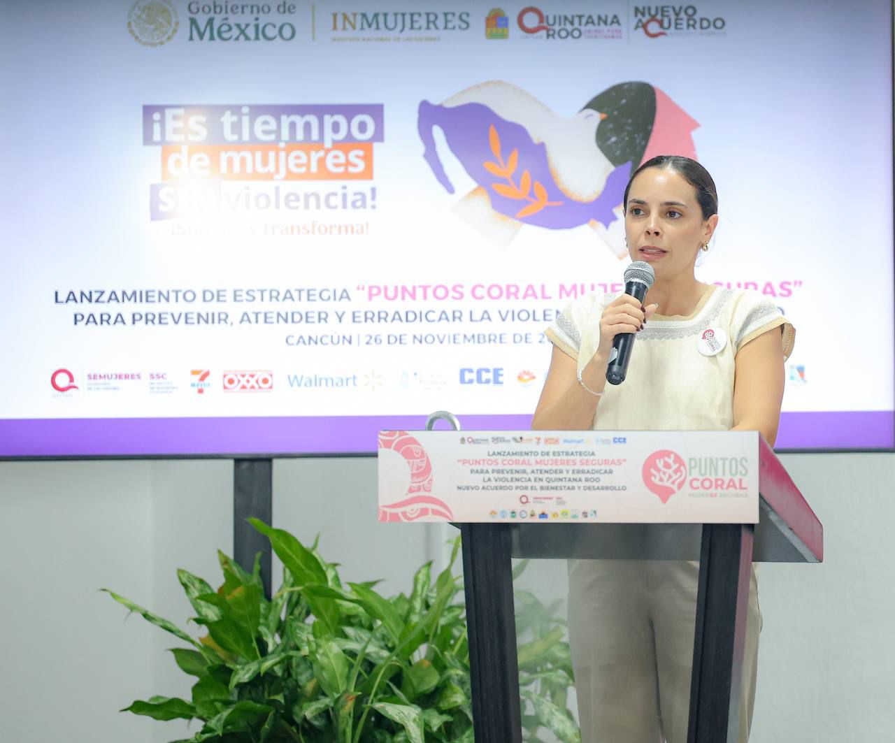 Por parte, la Gobernadora explicó que hace unos años en Benito Juárez, se inició con la estrategia de “Puntos Morados” para que las cancunenses buscaran ayuda sin ser revictimizadas, trabajo que ha mantenido la Presidenta Municipal, Ana Paty Peralta, por lo que ahora se tendrán los “Puntos Coral”, que hacen alusión al ecosistema protector del océano, para que precisamente se cuide a ese grupo poblacional.