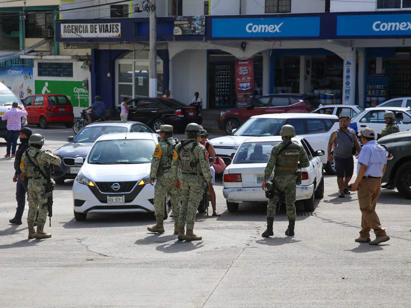 Las fuerzas de seguridad llegaron en 31 vehículos y recorrieron la Costera Miguel Alemán, desde la Base Naval hasta el Asta Bandera; en las próximas horas estarán vigilando en las colonias que son consideradas como focos rojos en el área de seguridad: las colonias Emiliano Zapata, Ciudad Renacimiento, y La Sabana; así como en el centro de la ciudad y la colonia Progreso.