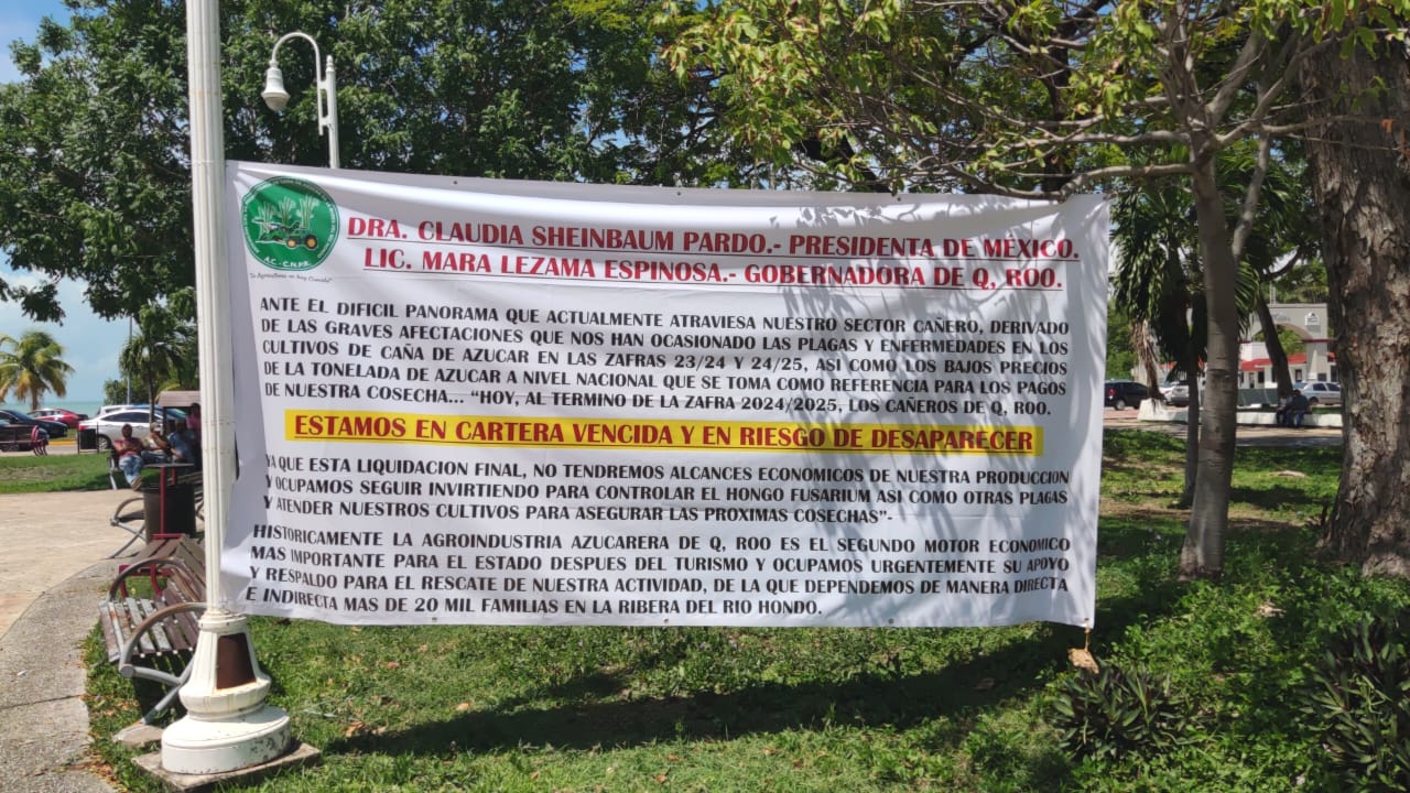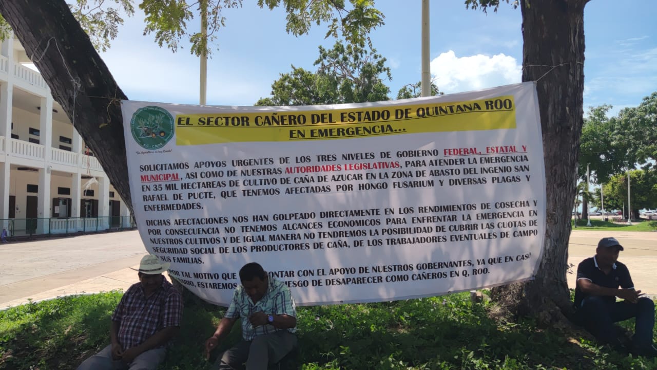 Chetumal (Marcrix Noticias).- La severa crisis que enfrenta el sector cañero propiciada por el brote del hongo Fusarium, que ha generando pérdidas económicas superiores a los 800 millones de pesos, la pérdida de tonelaje, la baja del KARBE y el desplome del precio de azúcar a nivel nacional, aunado a la fata de apoyo del gobierno, los orilló a manifestarse en el palacio de Gobierno de Chetumal.
