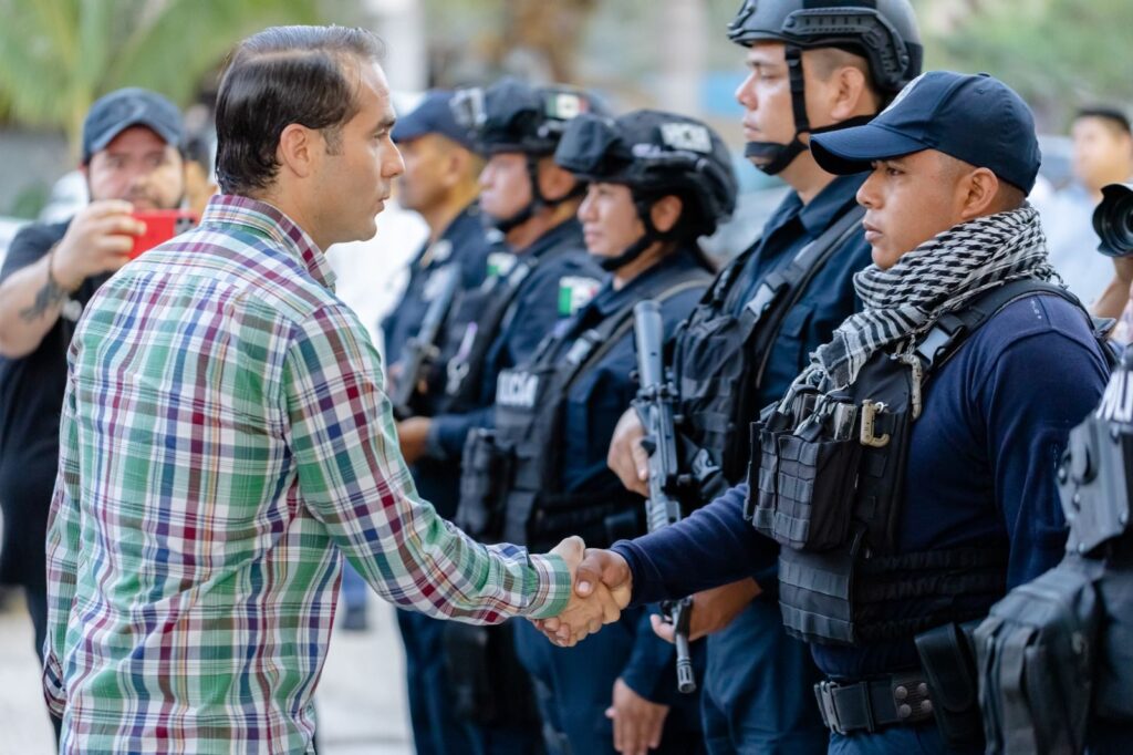 “Hay que estar coordinados, eso le comentaba aquí a los elementos que tienen que estar coordinados con los de la SEDENA, MARINA y Guardia Nacional, para cuidar el turismo. El turismo se siente seguro cuando los ve caminar en las calles”, indicó.