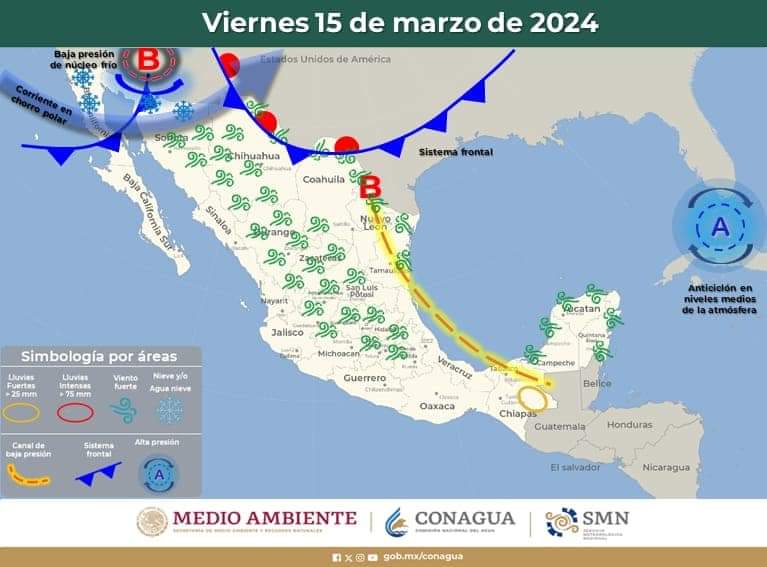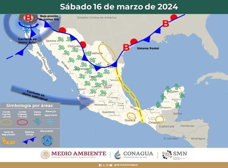 Los efectos de este fenómeno se tendrán durante los días jueves 14, viernes 15 y sábado 16 de marzo, y afectará principalmente a las zonas costeras del Estado.