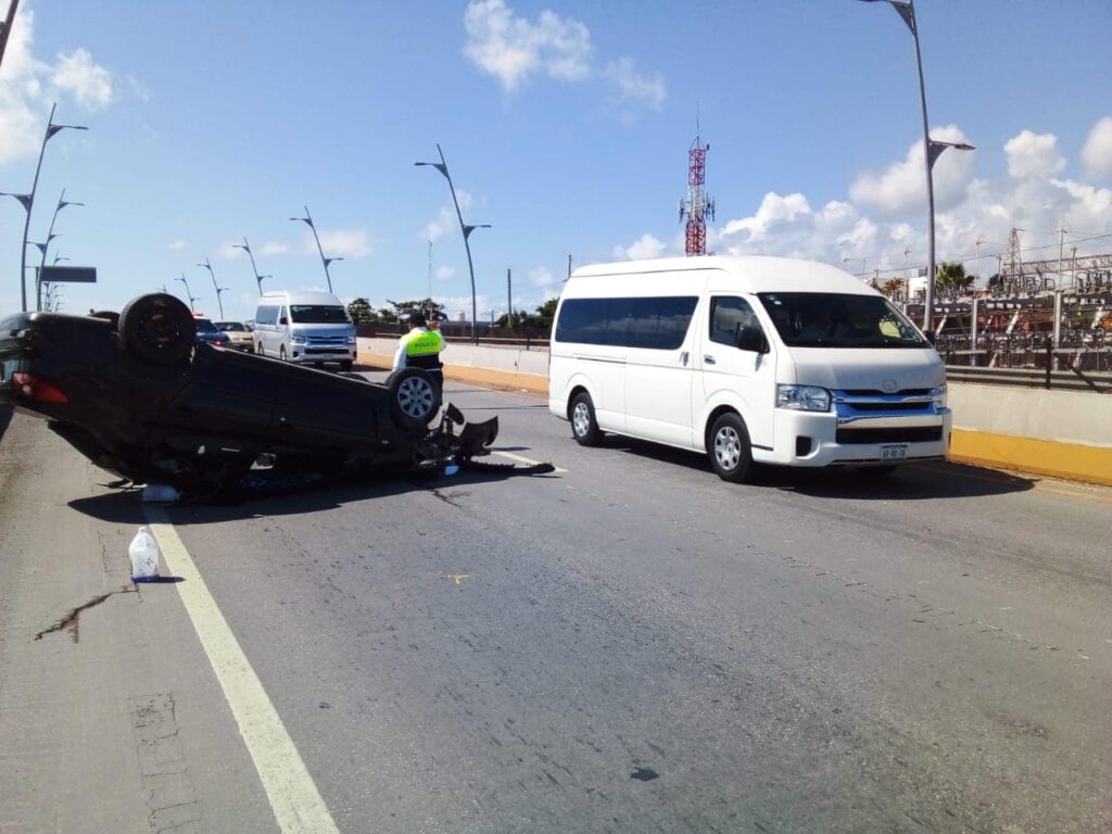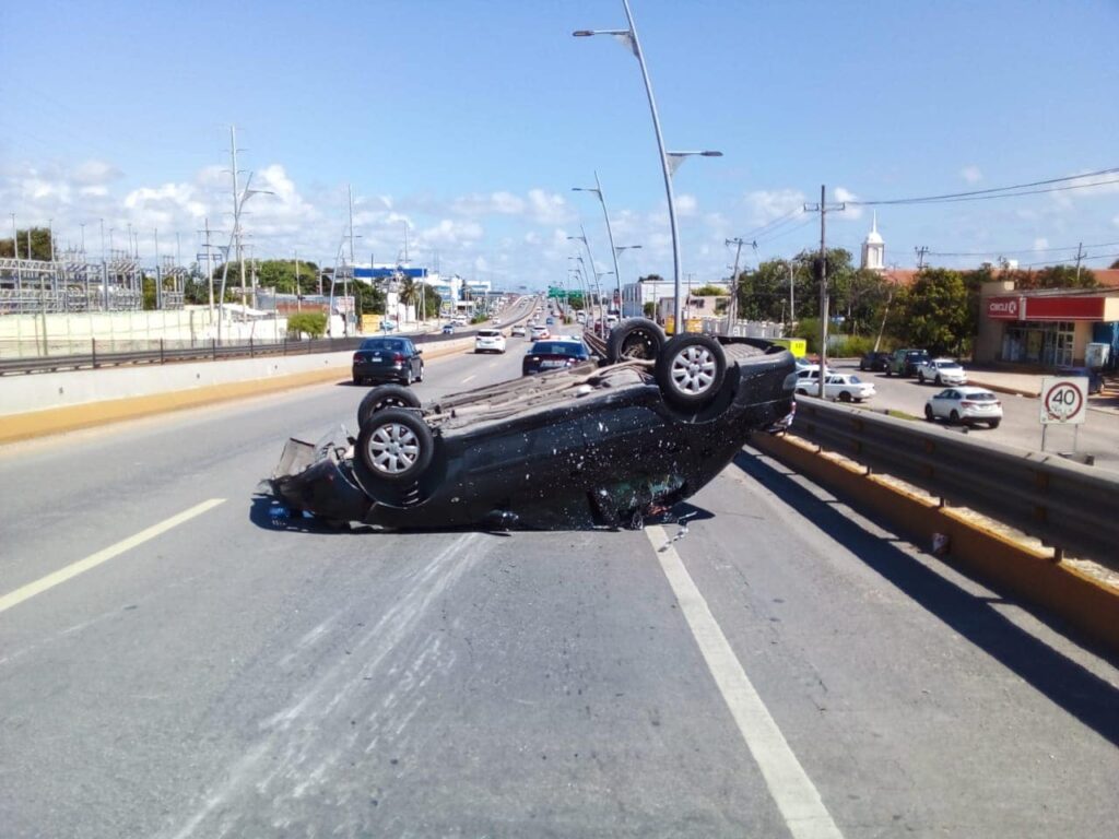 Playa del Carmen (Marcrix Noticias).- Un aparatoso accidente se registró este lunes en un puente de Playa del Carmen, donde por fortuna no hubo heridos, solo daños materiales.