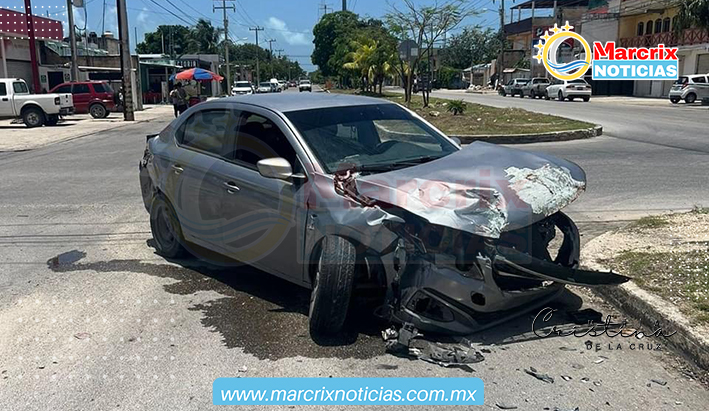 Cancún (Marcrix Noticias).- La falta del precaución del conductor de una camioneta, ocasiono esta tarde un aparatoso accidente, el cual por fortuna no dejó personas lesionadas.