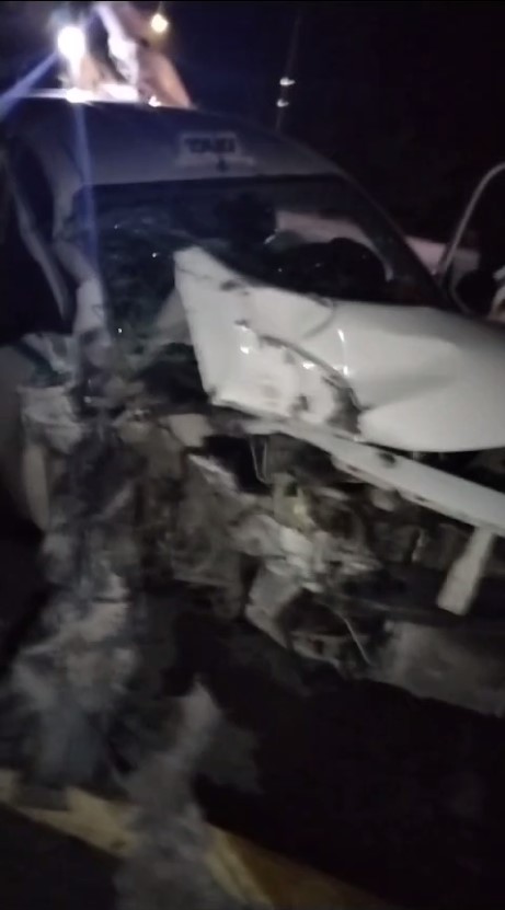 Al parecer, el taxi se chocó por alcance contra esta pesada unidad, lo que produjo el fuerte accidente.