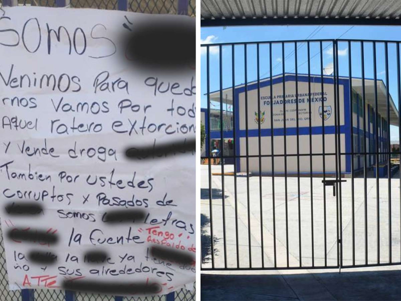 En proceso de investigación se encuentra una cartulina con el mensaje de un supuesto grupo criminal, esta fue colocada en la puerta de la escuela primaria Forjadores de México, ubicada en la colonia Nuevo San Juan.
