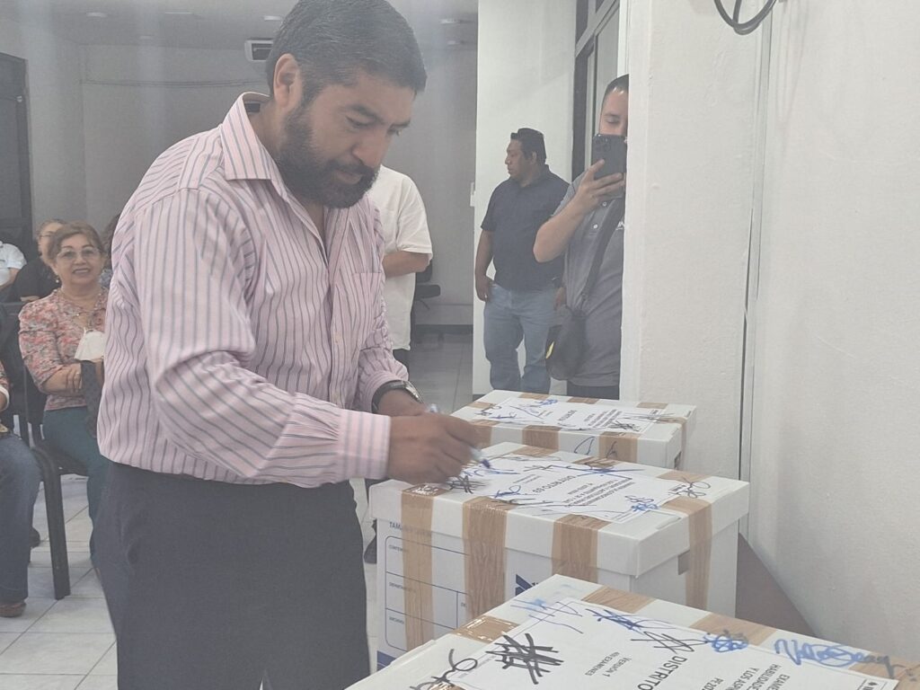 En presencia del consejero presidente, Sergio Bernal Rojas, de las consejeras electorales Lourdes Azarcoya Gómez y Karla Rivero González, así como del consejero electoral Hector Abuid Hernández; del Vocal secretario, Octavio Herrera Campos, la Vocal de Organización, Cathia Castillo Solís y la Vocal de Registro Federal de Electores, Yessenia Polanco Dzul, los Vocales Ejecutivos distritales de los cuatro distritos electorales recibieron los mil 500 exámenes que se aplicarán este sábado 9 de diciembre del presente.