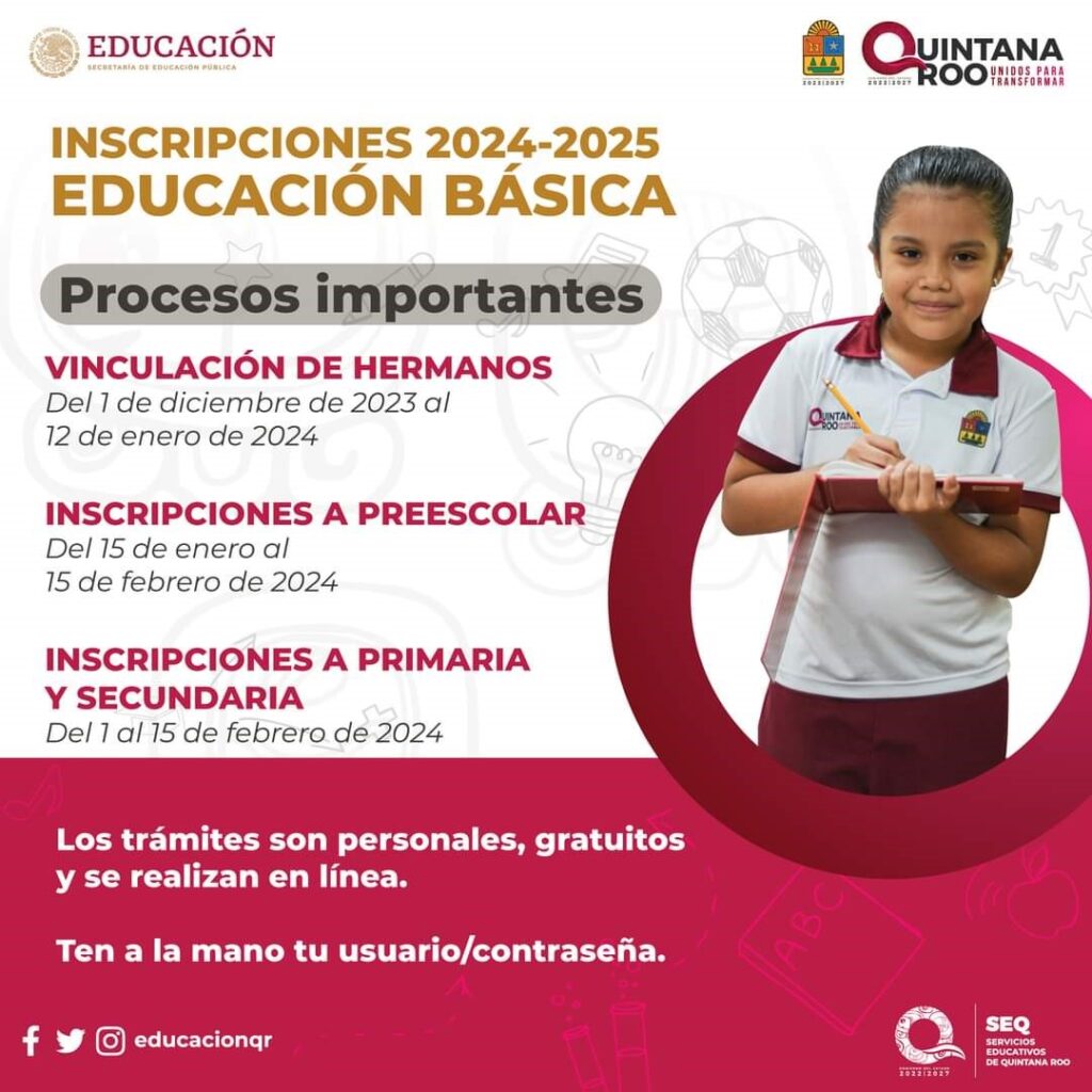 Puerto Morelos, Quintana Roo, (MARCRIX Noticias), 27 de enero de 2024.— La Dirección General de Educación de Puerto Morelos invitó a padres de familia y tutores a que se acerquen a la dependencia para inscribir a sus hijos que ingresarán a planteles de educación básica (preescolar, primaria y secundaria) en el ciclo escolar 2024-2025, informó el titular de la dependencia, Mario Humberto Alvarado Villarreal.