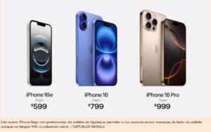 Disponible en versiones de 128 GB, 256 GB y 512 GB, con precios que comienzan desde los 14 mil 999 pesos en México, el iPhone 16e está diseñado para brindar una experiencia completa con una pantalla Super Retina XDR de 6.1 pulgadas, cámara Fusion de 48 Mpx y capacidades de comunicación satelital para emergencias.