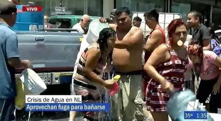 Nuevo León (Marcrix Noticias).- Una fuga de agua potable en Guadalupe fue aprovechada por decenas de personas, quienes no solo acudieron a ella para rellenar sus garrafones y cubetas, sino también para bañarse en plena vía pública.