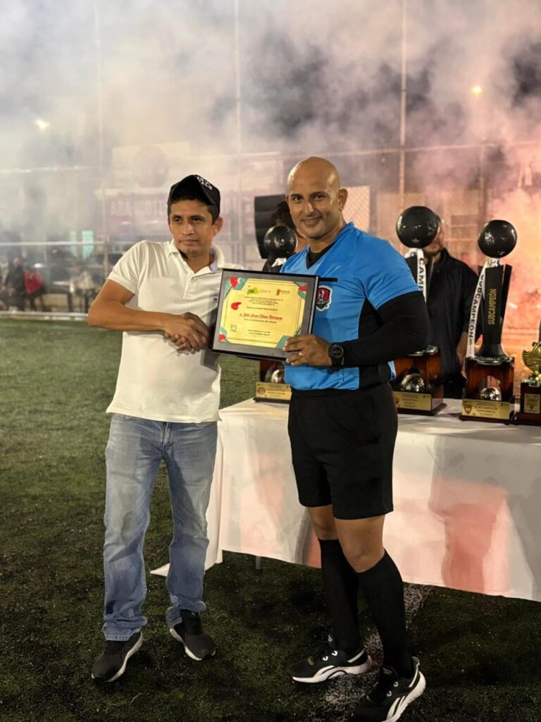 Cancún (Marcrix Noticias)- La noche del viernes 20 de diciembre, fue histórica en la cancha de la unidad deportiva de la región 95, cuando el árbitro cancunense Julio César Rodríguez escribió una página en el fútbol de Cancún y quintanarroense al dirigir su final número 600 a lo largo de 20 años de trayectoria en las canchas.