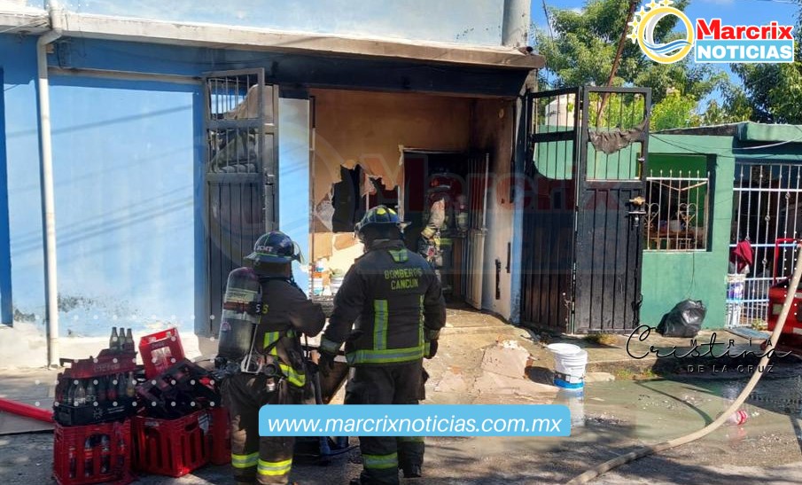 Cancún (Marcrix Noticias).- Un incendio consumió esta mañana un cuarto que servía como bodega para una tienda de abarrotes de la calle 31 norte, en la región 91, manzana 49, en Cancún.