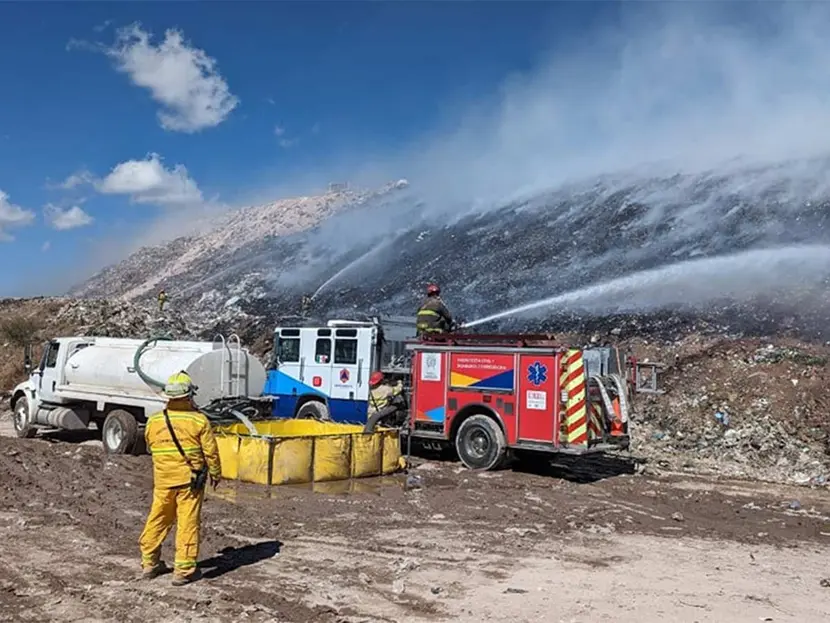 Una intensa movilización de personal de protección civil y bomberos provocó un incendio registrado en el relleno sanitario del municipio de Corregidora, en el estado de Querétaro.
