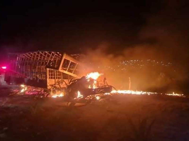 Al lugar arribaron elementos de Protección Civil quienes sofocaron el incendio, dándose a conocer que dicha caja seca contenía alrededor de 10 bidones de mil litros cada uno, los cuales transportaban huachicol que habría sido extraído de los ductos de Pemex.