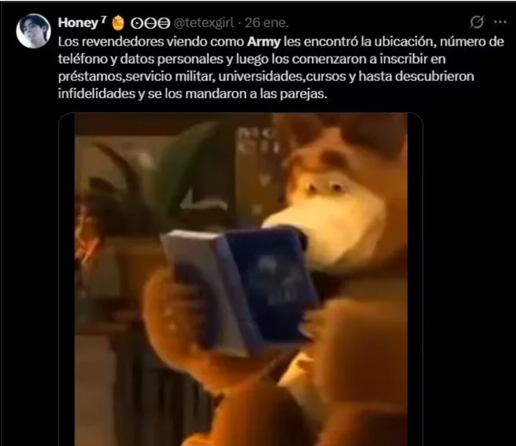 A través de X (antes Twitter), TikTok y grupos de WhatsApp, integrantes del ARMY iniciaron una campaña para identificar a revendedores, recopilando información en publicaciones públicas, como nombres, teléfonos, cuentas bancarias y perfiles usados para ofrecer entradas.