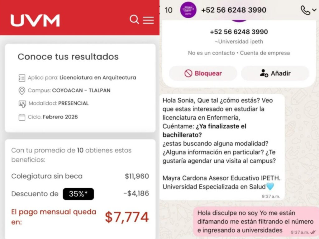 Entre los casos más difundidos, fans compartieron capturas de registros de solicitud de información en la Universidad del Valle de México (UVM), incluso con becas automáticas activadas en algunos formularios.