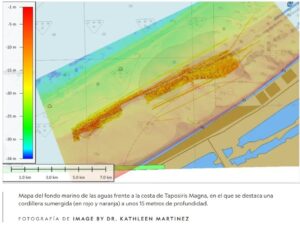 De acuerdo con la exploradora de National Geographic, el hallazgo se centra en un túnel de más de mil 300 metros, gran parte sumergido en el mar Mediterráneo, que conecta con las ruinas del antiguo puerto de Taposiris Magna, ubicado a 50 kilómetros de Alejandría.
