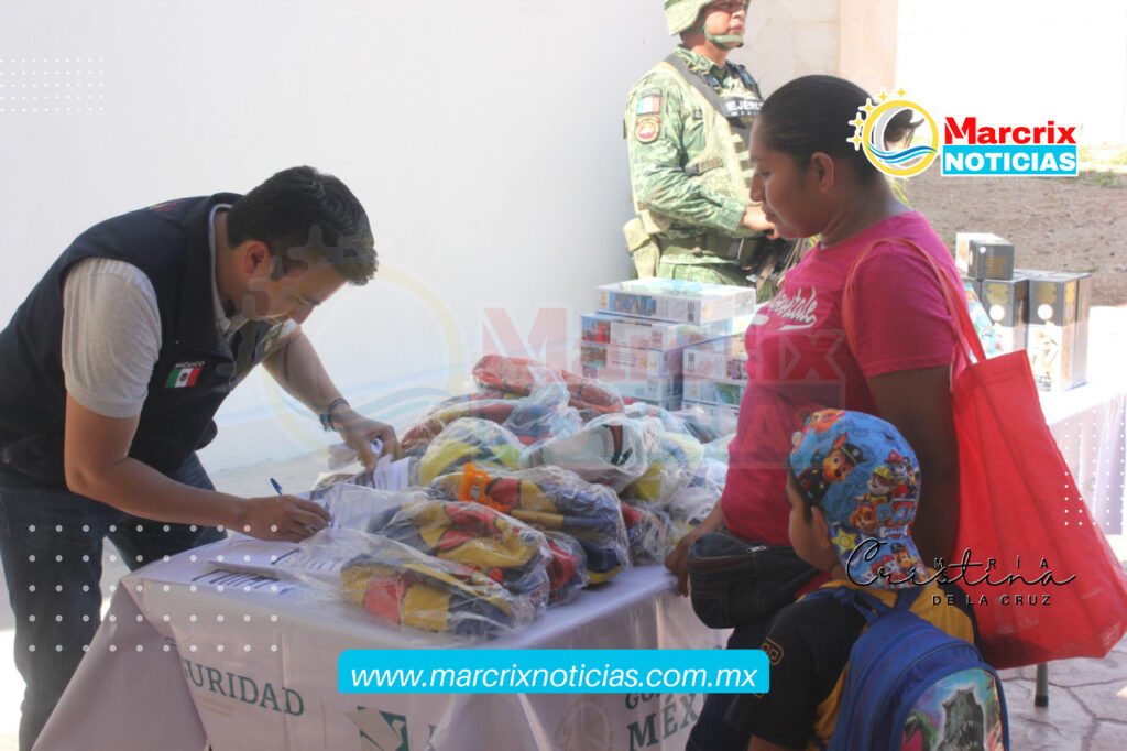 Lugar donde los elementos de las corporaciones citadas recibieron en su mayoría juguetes bélicos, pistolas y rifles de juguete, que llevaron niños de la citada región y que fueron canjeados por balones de fútbol y basquetbol, así como juegos de mesa.