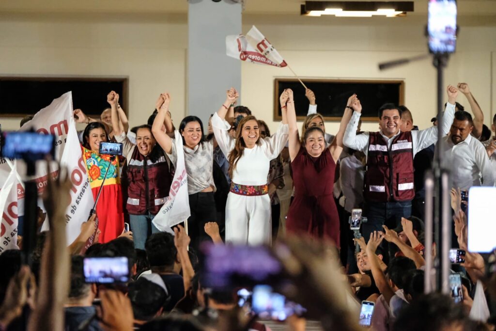 Chetumal, Quintana Roo, 5 de junio.- Hoy los quintanarroenses dieron muestra contundente en las urnas que quieren la transformación del Estado, aseguró la virtual primera mujer gobernadora Mara Lezama, al celebrar en la capital del Estado, el triunfo arrasador de la coalición Juntos Hacemos Historia, que de acuerdo con el Programa de Resultados Preliminares, tiene una ventaja de 3 a 1 contra el segundo lugar.