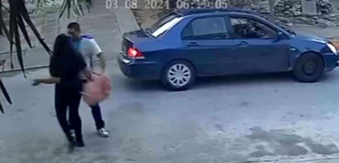 Cámaras de videovigilancia lograron captar el momento en el que un hombre bajó de un automóvil con un arma de fuego y asaltó a una mujer que iba caminando por la zona.
