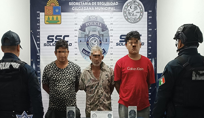 Oswaldo “N”, Brayan “N” y José “N” de 34 fueron detenidos en la localidad de Nuevo Noh-Bec
