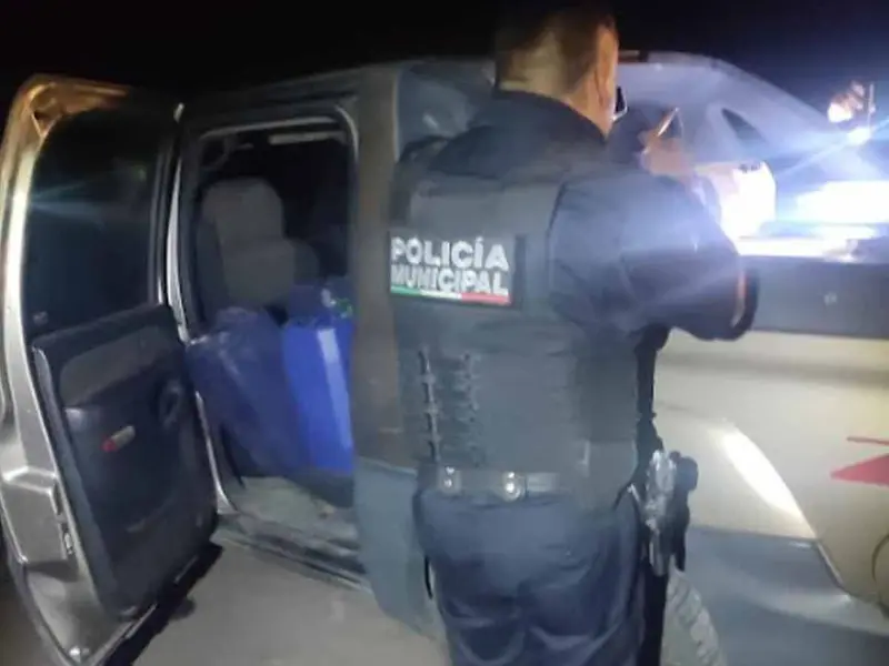 Elementos de seguridad pública del municipio de San juan del Río aseguraron una camioneta cargada con bidones que contenían hidrocarburo presuntamente ordeñado de ductos de Petróleos Mexicanos (PEMEX).