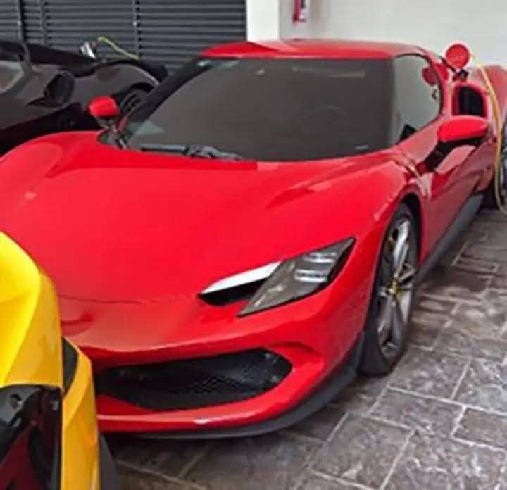 Las autoridades catearon la residencia y aseguraron 14 vehículos de lujo, cuatro laptops, dos tablets, una terminal para tarjetas bancarias, tres memorias USB y 10 celulares.