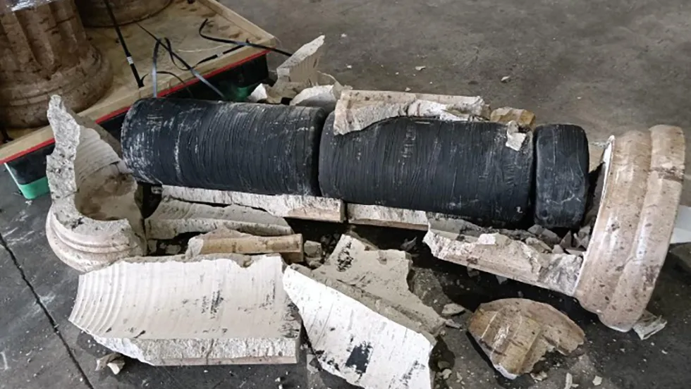 El reporte oficial señala que agentes del Ministerio Público Federal detectaron 16 piezas de columnas de piedra de cantera en cuyo interior estaban 16 paquetes emplayados con plástico transparente que contenían vegetal verde y seco que pericialmente resultó positivo para Cannabis Sativa.