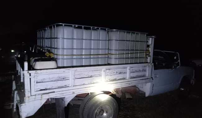 Durante la revisión, el personal de la Guardia Nacional descubrió un total de 14 contenedores de diferentes tamaños; 10 de éstos contenían hidrocarburo, presuntamente obtenido de manera ilegal.