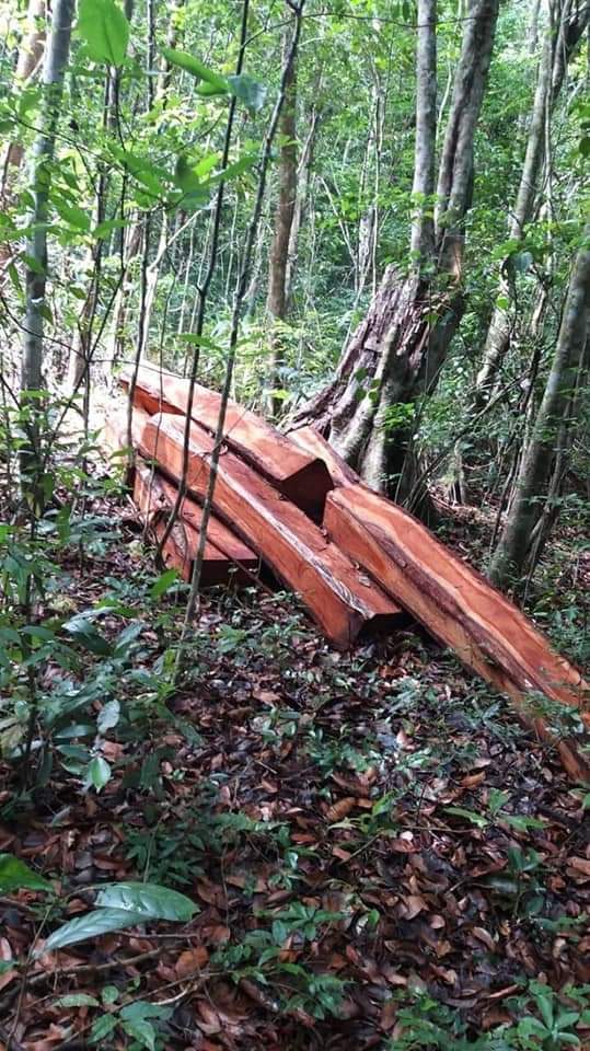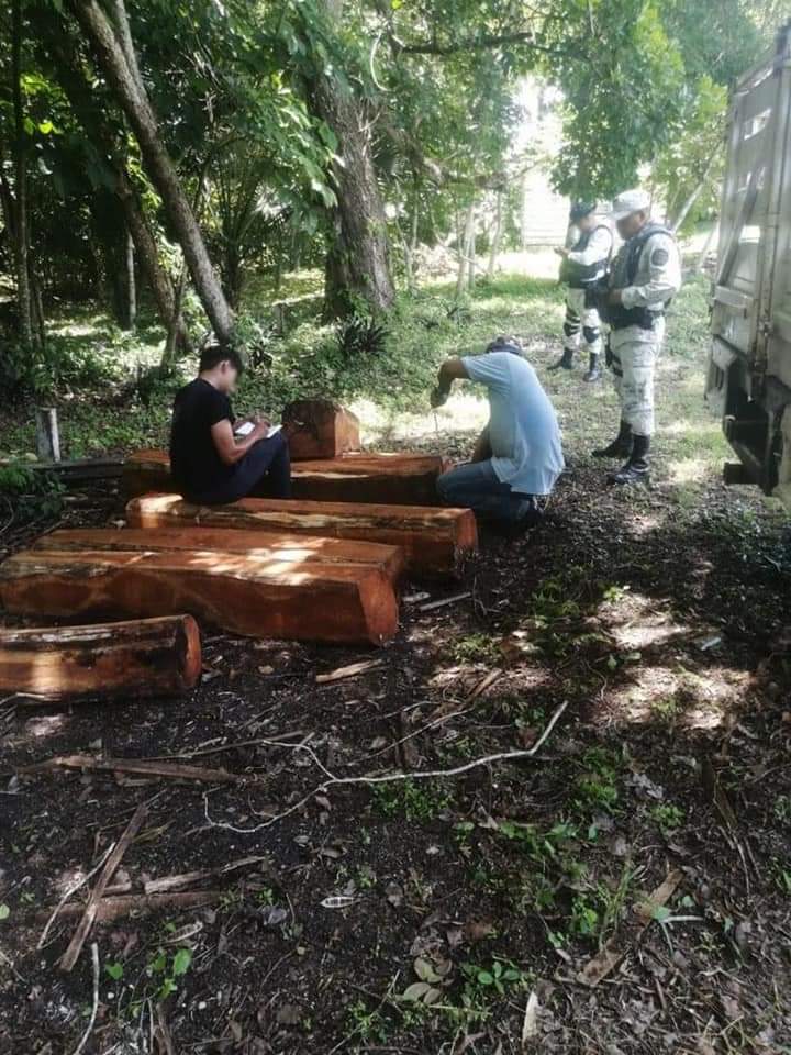 Al realizar patrullajes de prevención y seguridad en el municipio de Calakmul, guardias nacionales ingresaron a un camino de terracería en donde ubicaron siete trozas de recurso maderable, también conocido como Nogal del Caribe, una especie de mayor demanda para muebles finos.