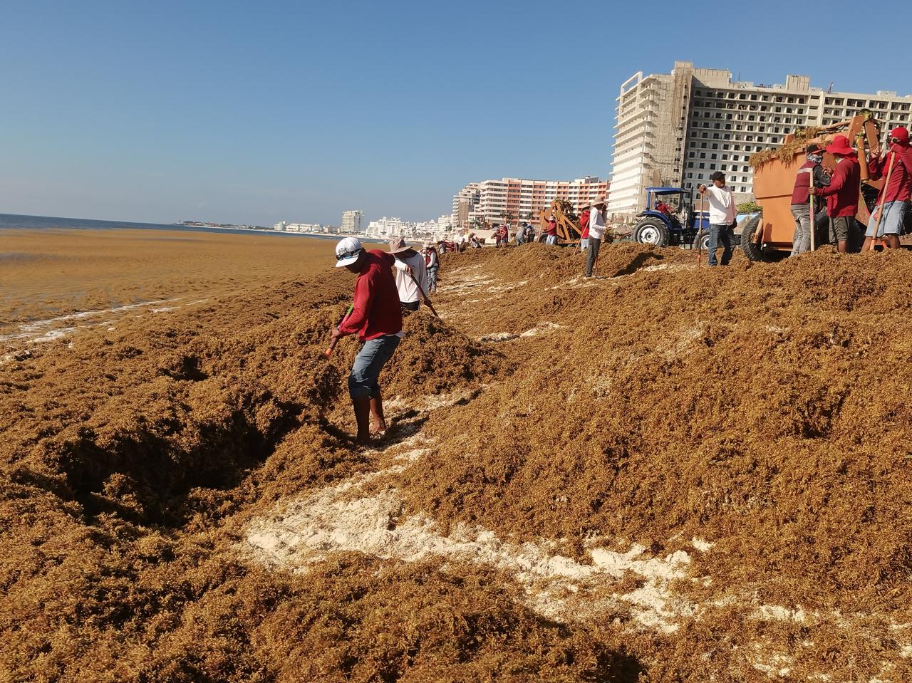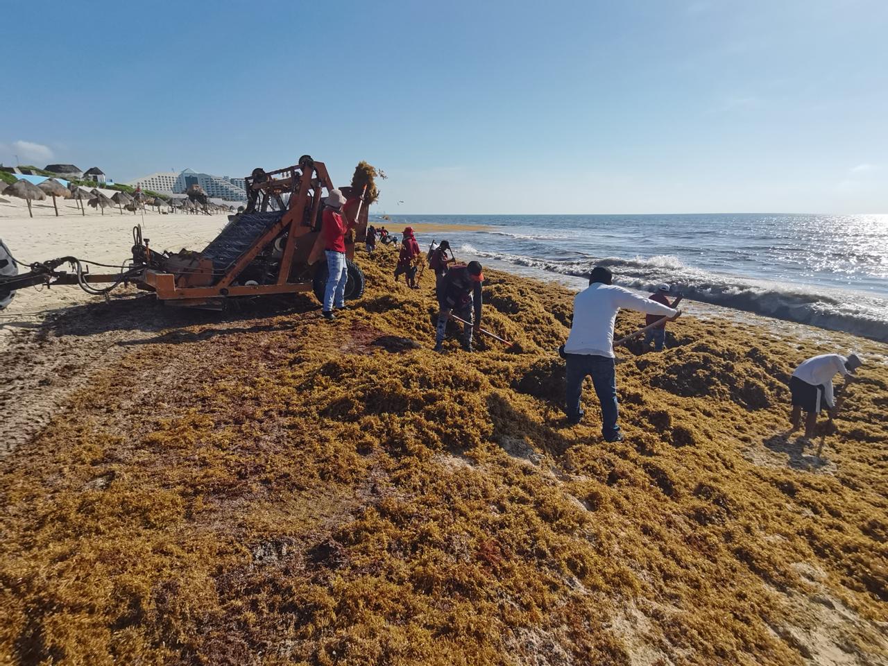 Se continúa con el retiro de sargazo en playa Delfines para que esté lista para el turismo visitante.