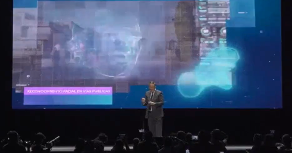 La siguiente tecnología que presentó fueron las cámaras inteligentes para la Guardia Nacional. “Cada Guardia Nacional con esa cámara se convierte en otra fuente de información en tiempo real”.