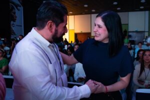 La Presidenta Municipal de Solidaridad acompaña a la gobernadora Mara Lezama durante el evento que se lleva a cabo en la isla de Cozumel
