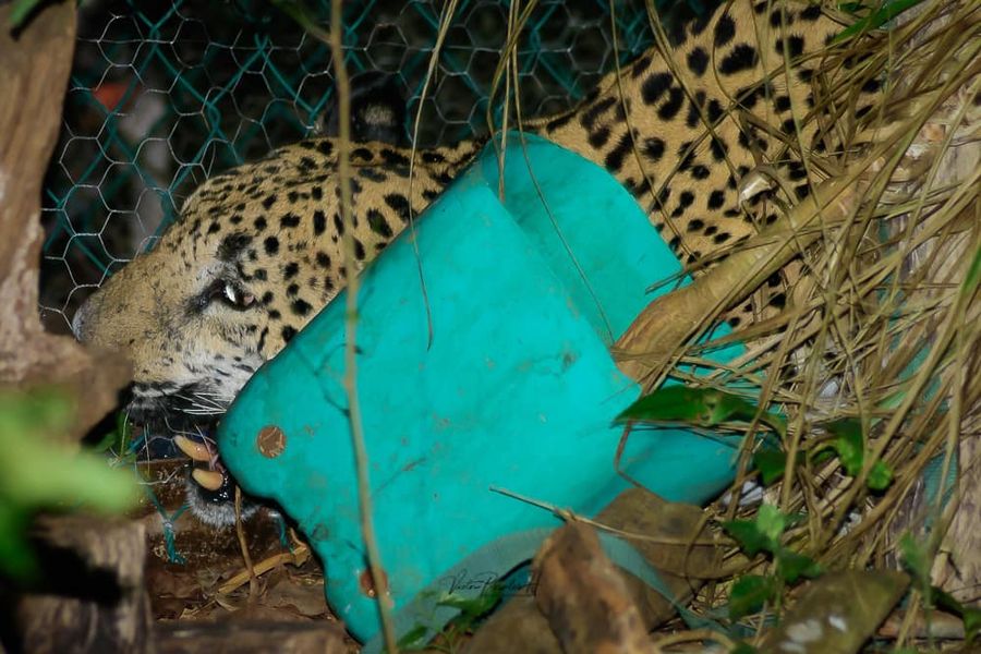 Proyecto Aak Mahahual, A. C., dio a conocer una serie de fotografías en la que se observa a un jaguar intentando abrir una de estas “casitas reforzadas”. Después de algunos intentos sin lograr abrirla, el felino prefirió retirarse.