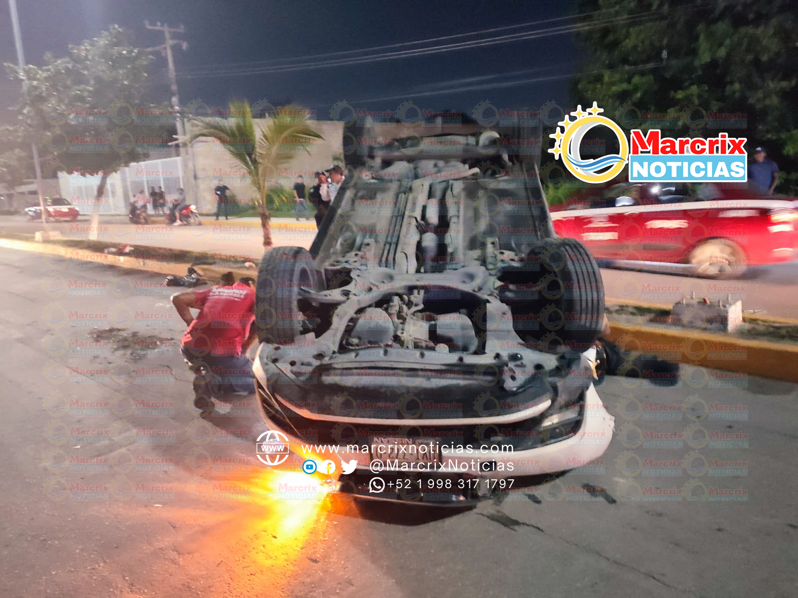 Por el ataque el chofer perdió el control de la camioneta y termino con las llantas para arriba en medio de la calle.