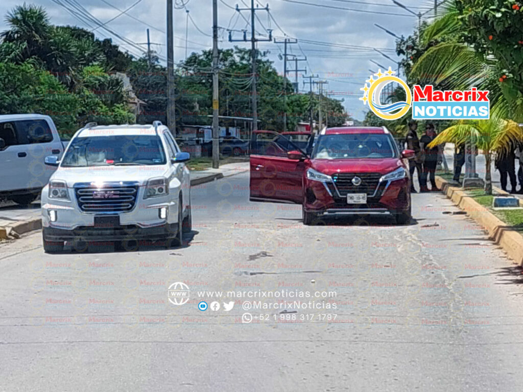 Cancún (Marcrix Noticias).- Tres hombres que viajaban en una camioneta fueron emboscados por sicarios en iban en vehículos, en la avenida Rancho Viejo, en la zona continental de Isla Mujeres; dos se trasladaron al hospital por sus propios medios en un taxi rojo, otro fue llevado por una ambulancia de la Cruz Roja.